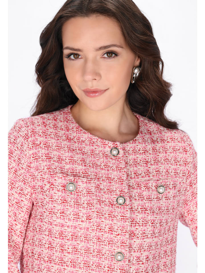 Дополните свой праздничный гардероб этим стильным блейзером из праздничной коллекции. Выполненный в классическом крое с укороченной длиной, он имеет классический круглый вырез и длинные рукава, создающие изысканный силуэт. Блейзер, сшитый из фактурной букле-ткани, дополнен нагрудными карманами, которые добавляют стиля и функциональности. Однобортный дизайн обеспечивает вневременную элегантность, делая эту вещь идеальным выбором для мероприятий и праздничных случаев, где элегантность и современный стиль сочетаются.