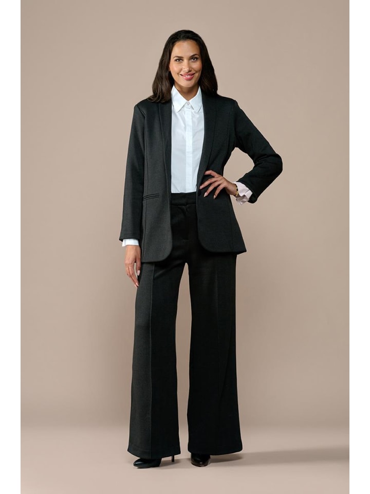 Добавьте в свой гардероб вневременную элегантность с этим черным блейзером от Mart Visser. Эта универсальная вещь сочетает в себе женственность, стиль и комфорт. Слегка приталенный крой деликатно подчеркивает ваши изгибы, а прямой силуэт и длина чуть выше бедер создают изящный образ. Блейзер изготовлен из легкой, струящейся эластичной ткани, удобен в ношении и обеспечивает свободу движений. Глубокий черный цвет делает его эффектным и универсальным: идеально подходит для формальных случаев с брюками Celia, но одинаково стильно смотрится и в повседневных сочетаниях с джинсами. Классические детали, такие как узкие лацканы, двубортная застежка на обтянутые пуговицы и прорезные карманы, придают дизайну роскошный вид. Передние и задние швы обеспечивают идеальную посадку. Разрез сзади повышает комфорт, а узкие рукава со стильным швом и небольшим разрезом по низу добавляют изысканный дизайнерский штрих. Материал: 55% хлопок, 45% полиэстер