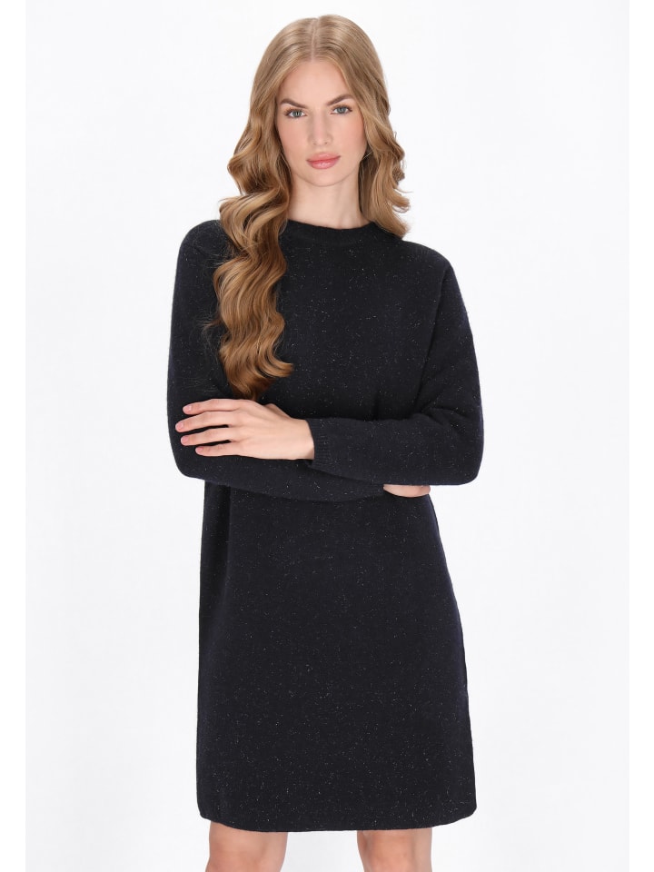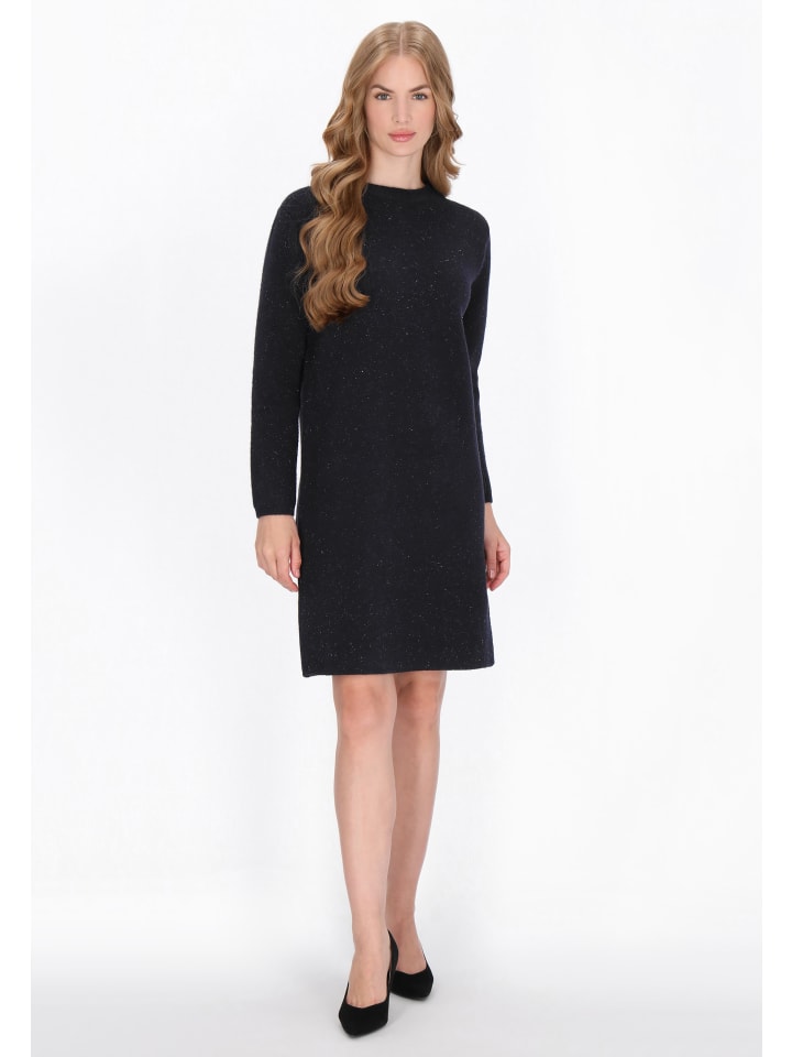 - Мини-платье классического кроя с круглым вырезом и длинными рукавами