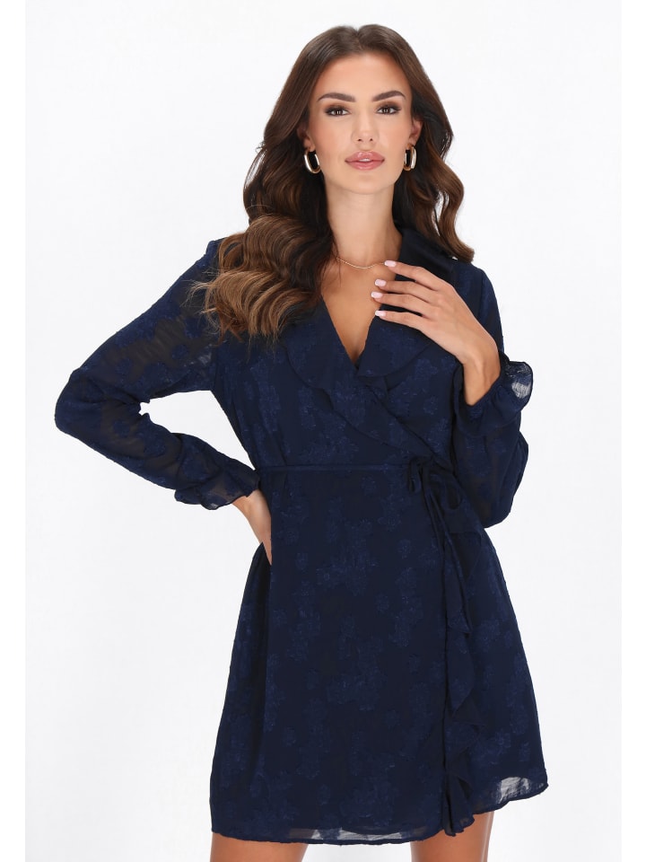 - Мини-платье с запахом, V-образным вырезом и длинными рукавами, стандартного кроя