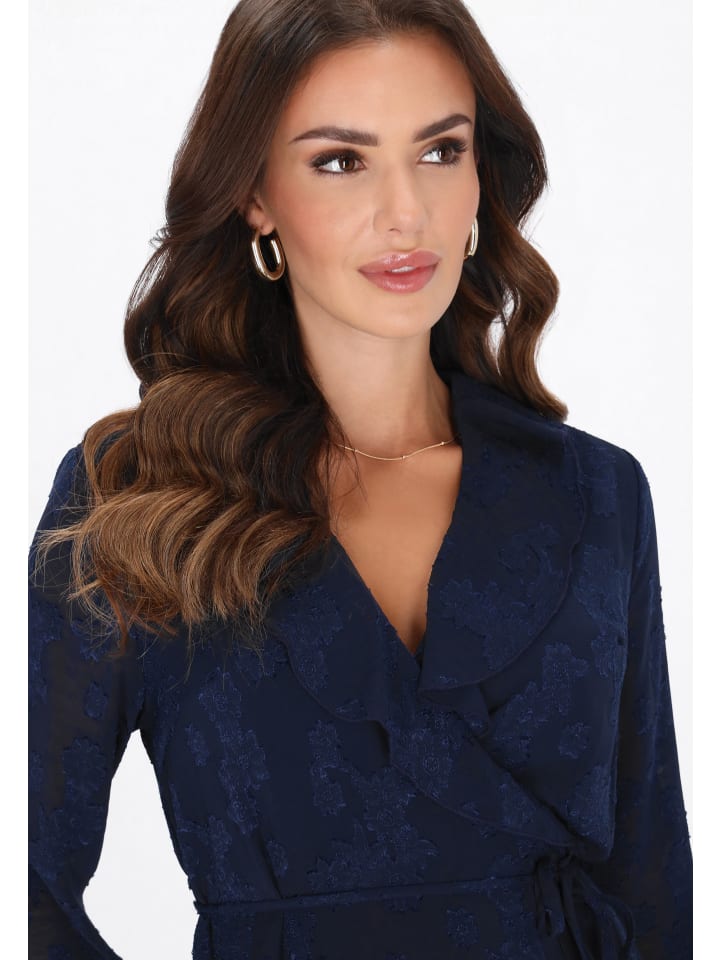 Покорите всех своим утонченным очарованием этого мини-платья с запахом из коллекции Faina. Изготовленное из легкого шифона, оно пленяет цветочным узором и изящной вышивкой, добавляя неповторимый шарм. Дизайн с запахом и поясом на талии прекрасно подчеркивает силуэт, а V-образный вырез придает женственность. Длинные рукава и оборки добавляют романтичности и воздушности, создавая гармоничное сочетание элегантности и непринужденности. Это идеальный выбор для торжественных случаев, романтических встреч и особых мероприятий, где вы хотите выглядеть шикарно и стильно.