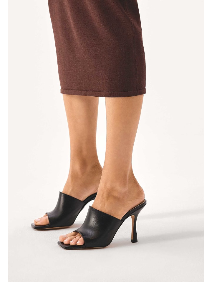 Эти элегантные мюли на каблуке - воплощение современного шика и идеально подойдут ценителям изысканного стиля. Изготовленные из высококачественной натуральной кожи глубокого черного цвета, они отличаются минималистичным, но эффектным дизайном. Верхняя часть, выполненная в виде широкого, идеально сформированного ремешка, мягко облегает стопу, обеспечивая устойчивость и комфорт. Квадратные носки, отражающие современные тенденции, придают обуви современный характер и подчеркивают ее геометрическую гармонию. Эти мюли одинаково хорошо подойдут как дополнение к элегантному вечернему наряду, так и в качестве стильного акцента в современном деловом образе. Подошва из тунца отличается прочностью и эстетичным внешним видом. Подкладка из полуанилиновой козьей кожи обеспечивает исключительный комфорт благодаря отличному влагопоглощению. Верх: Кожа Подкладка: Другой материал Стелька: Другой материал Подошва: Другой материал