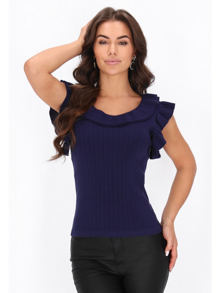 Стильный и удобный свитер прямого кроя, идеально подходящий для повседневной носки. Он имеет элегантный вырез-лодочку и короткие рукава с оборками, добавляющие легкости и девичьего очарования. Изготовленный из мягкой ребристой вязки, он удобен в носке и легко сочетается с другой одеждой. Этот свитер из коллекции Faina сочетает в себе повседневный стиль и утонченную элегантность.