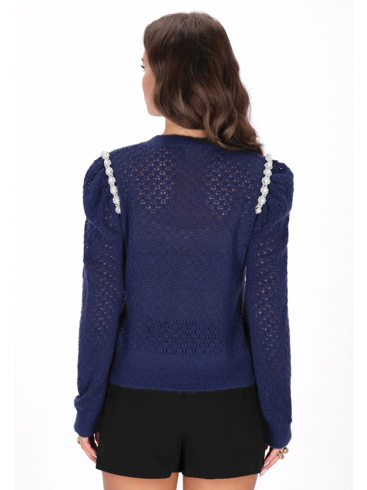 Этот элегантный свитер классического кроя сочетает в себе женственное очарование и комфорт. Изготовленный из мягкой трикотажной ткани с ажурным узором, он очаровывает своими утонченными деталями. Длинные пышные рукава придают ему романтический оттенок, а декоративные жемчужины добавляют шика и праздничного шарма. Круглый вырез горловины красиво драпируется, обеспечивая комфорт в течение всего дня. Это идеальный выбор для праздничных встреч, торжественных ужинов или зимних нарядов с ноткой элегантности. Этот свитер сочетает в себе изящество и уникальность. Часть коллекции Faina.
