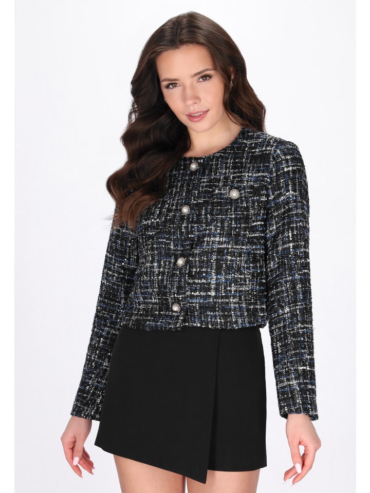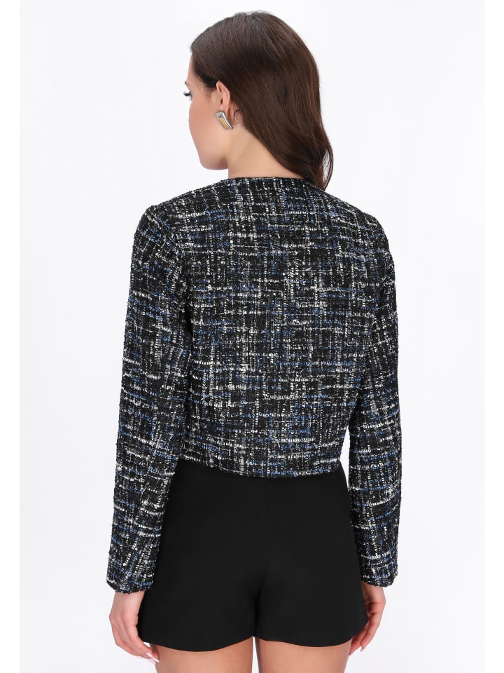 Дополните свой праздничный гардероб этим стильным блейзером из праздничной коллекции. Выполненный в классическом крое с современной укороченной длиной, он имеет классический круглый вырез и длинные рукава для создания изысканного силуэта. Блейзер изготовлен из фактурной букле с тонким меланжевым узором и дополнен нагрудными карманами, которые добавляют стиля и функциональности. Однобортный дизайн обеспечивает вневременную элегантность, делая эту вещь идеальным выбором для мероприятий и праздничных случаев, где элегантность и современный стиль сочетаются.