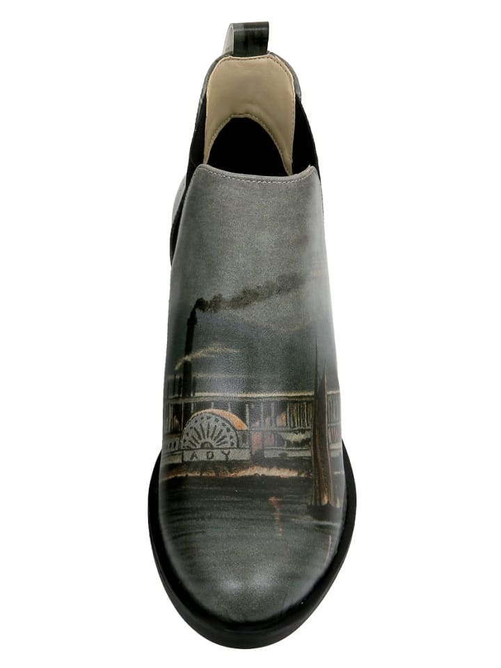 Ботинки DOGO Eve “Nature” сочетают в себе художественный дизайн и спокойную, гармоничную цветовую гамму. Мягкие оттенки серого и зеленого создают пейзаж с изящными деталями, такими как лодки, мосты и отражения в воде - мотив, напоминающий импрессионистские картины, излучающий спокойствие.