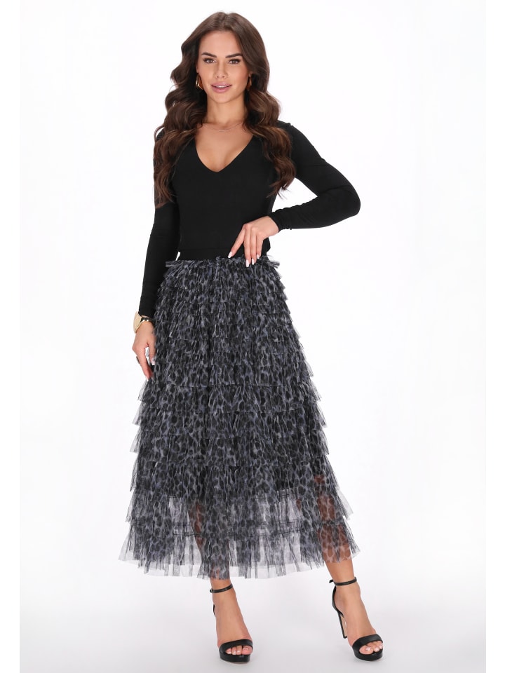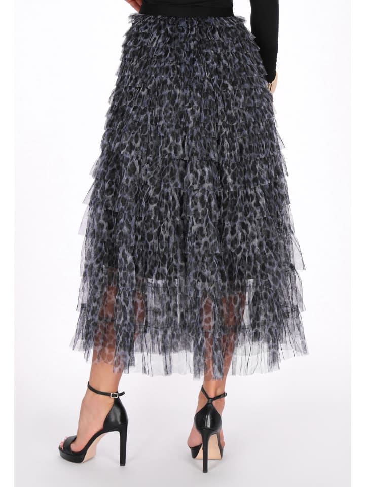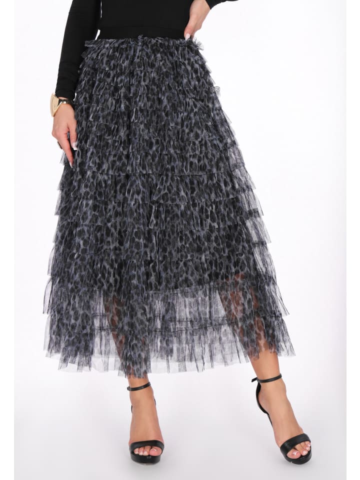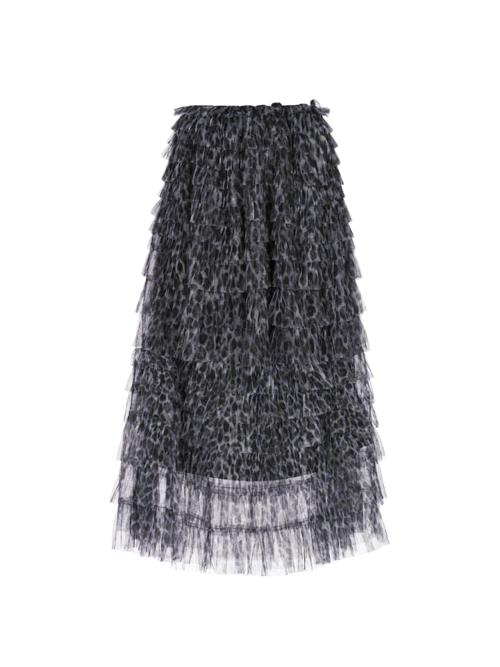 Эта стильная юбка из коллекции Faina сочетает в себе женственную легкость и нотку смелости. Классический крой и длина миди красиво драпируют силуэт, создавая слегка расклешенную юбку. Изготовленная из нежного тюля и украшенная модным леопардовым принтом, она привлекает внимание и добавляет образу выразительности. Многослойная конструкция придает юбке объем и движение, подчеркивая ее романтический, но современный характер. Это идеальный выбор для праздничных и особых случаев - эффектная, женственная и очаровательная вещь из коллекции Faina.