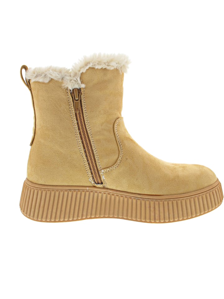 Прочная, нескользящая подошва - Петля на пятке - Отделка из искусственного меха в верхней части голенища - Внутренняя молния - Декоративная молния снаружи - Модные ботильоны