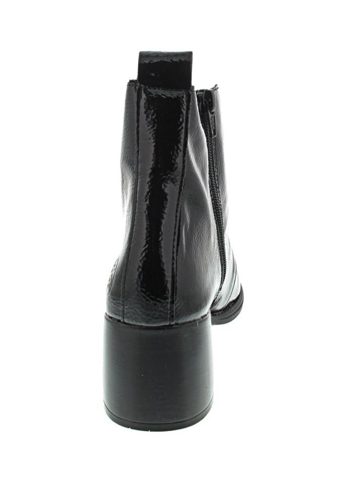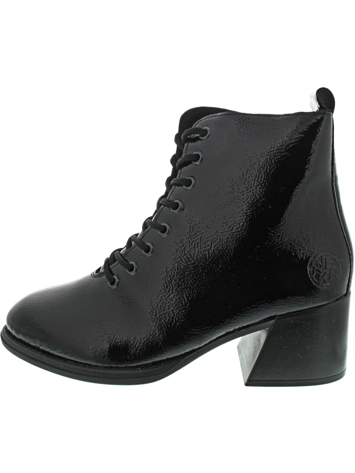 Больше места благодаря специальной посадке Rieker - Прочная, нескользящая подошва - Внутренняя молния - Модный вид лакированной кожи - Теплые ботинки на шнуровке с эффектным блочным каблуком