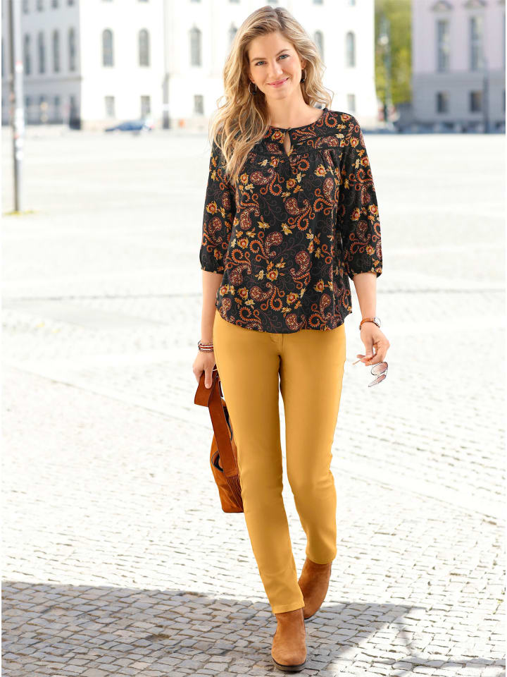 Брюки с анатомическим поясом, застежкой на пуговицу и молнию спереди и двумя карманами спереди и сзади. V-образная кокетка спереди и сзади, а также комфортная эластичная ткань обеспечивают отличную посадку. Ширина штанины внизу около 32 см. Ремень в комплект не входит. Поддерживает инициативу «Хлопок, произведенный в Африке».