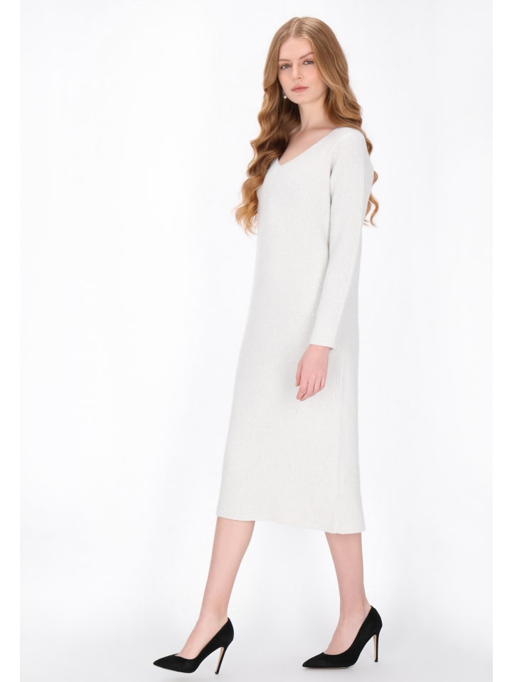 - Платье миди классического кроя с V-образным вырезом и длинными рукавами