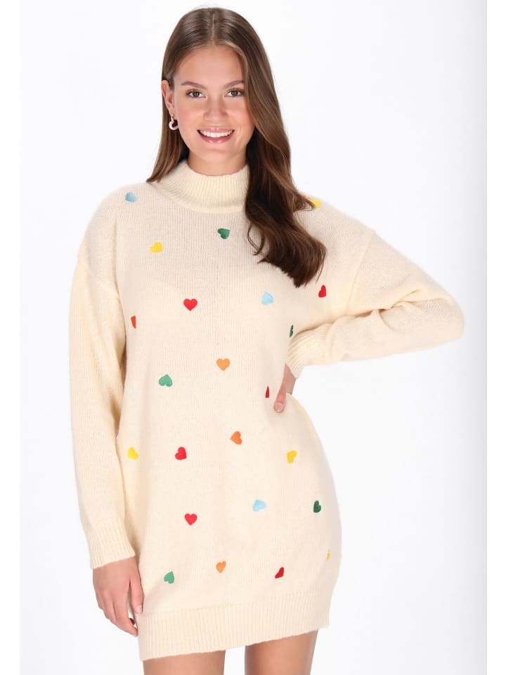 Это очаровательное трикотажное мини-платье из коллекции Young Fashion идеально подойдет для начала учебного года - оно сочетает в себе комфорт, свободный крой и модный, молодежный стиль. Изготовленное из мягкой трикотажной ткани, оно имеет свободный крой, длинные рукава со спущенными плечами и воротник-стойку для придания утонченной элегантности. Нежная вышивка в виде сердечек подчеркивает его очарование. Это идеальный вариант на каждый день - для школы, встреч с друзьями или ленивых послеобеденных часов. Мягкое, девичье и стильное - создано с учетом молодежной моды.