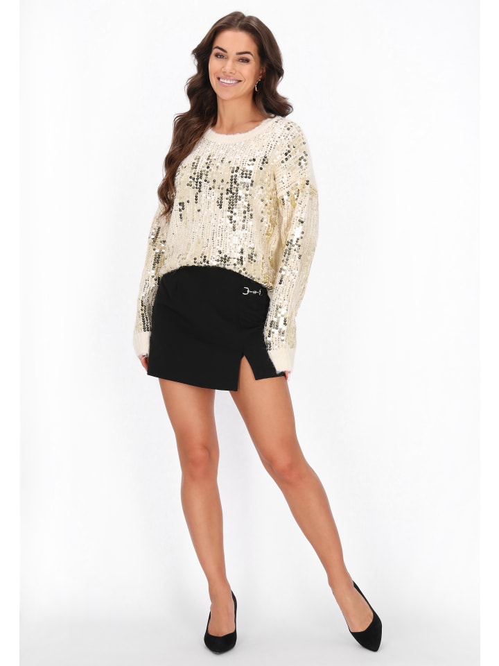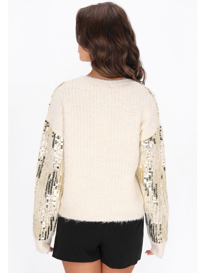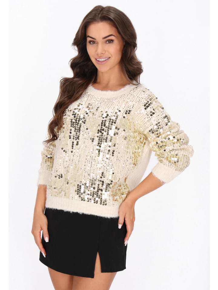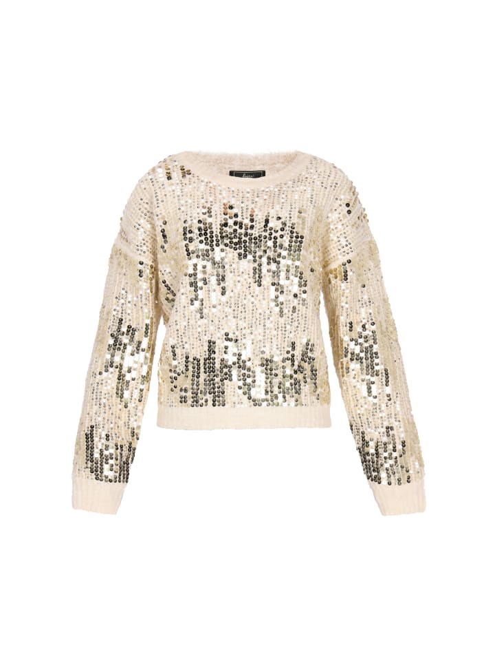 Этот свитер из коллекции Faina - элегантная вещь, сочетающая комфорт с легким блеском. Изготовленный из мягкой трикотажной ткани с мерцающим узором, он дарит комфорт и уют. Длинные рукава, свободный крой, круглый вырез и приспущенные плечи придают ему современный, повседневный вид. Рукава и передняя часть украшены пайетками, подчеркивающими его элегантный стиль. Идеально подходит для особых случаев, предлагая вневременное сочетание классики и комфорта.