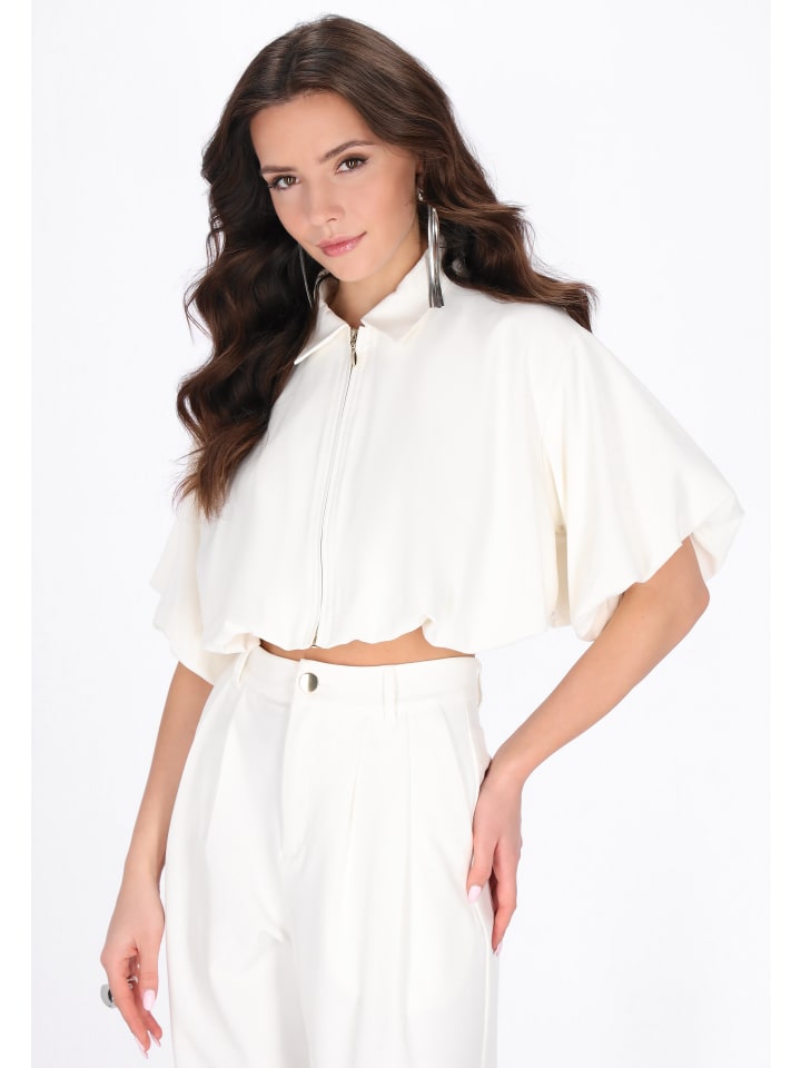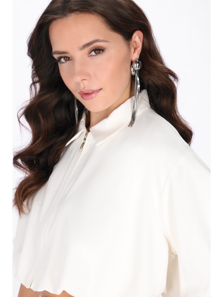 Модная куртка свободного кроя укороченной длины, идеально подходящая для повседневного стиля. Классический воротник, короткие рукава-фонарики и приспущенные плечи придают ей современный и стильный вид. Практичная застежка-молния и эластичный низ обеспечивают комфортную посадку. Изготовлена из высококачественной тканой ткани с гладким, равномерным рисунком, сочетает в себе комфорт и легкость. Идеальное дополнение к вашей повседневной коллекции.