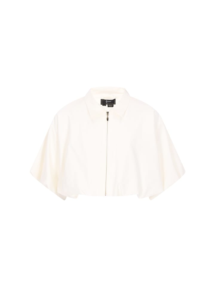 - Укороченная куртка свободного кроя с классическим воротником и короткими рукавами
