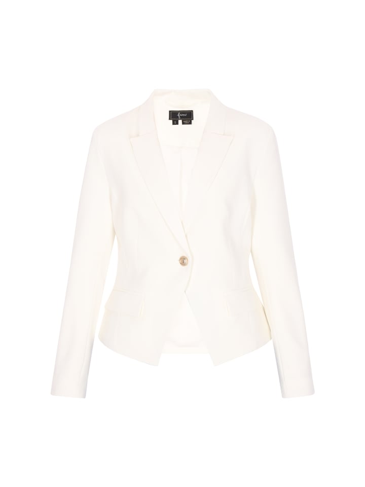 Стильный классический жакет, идеально подходящий для особых случаев. Воротник с лацканами и V-образный вырез подчеркивают шею и добавляют нотку шика. Длинные рукава и классическая однобортная застежка придают ему вневременной вид. Практичные накладные карманы добавляют функциональности. Изготовленный из высококачественной тканой ткани с гладким, равномерным рисунком, он идеально подходит для мероприятий и торжеств. Прекрасный выбор из праздничной коллекции.