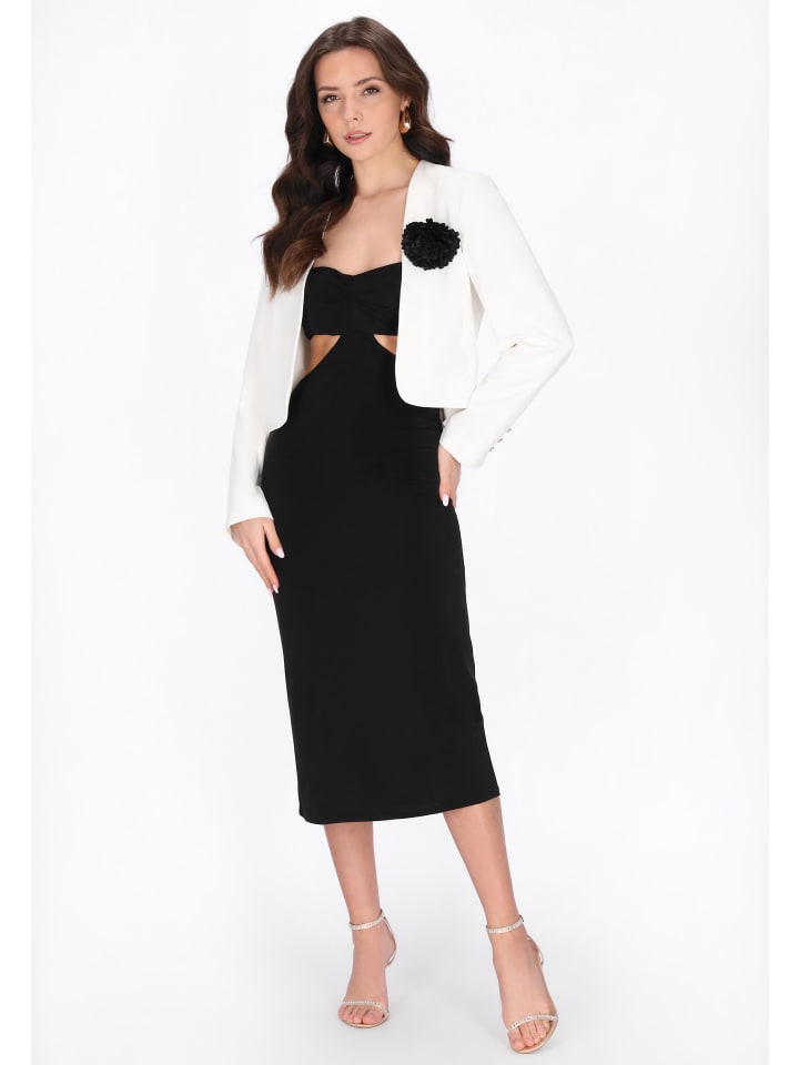 Классический укороченный жакет модной длины, идеально подходящий для особых случаев. Благодаря открытому переду и длинным рукавам, эта модель создает легкий и современный образ. Изготовленный из высококачественной ткани, он украшен нежным цветочным мотивом, придающим ему изысканность и женственность. Гладкий, однородный крой делает жакет идеальным дополнением к формальной одежде. Идеальный выбор для особых мероприятий и торжеств, это стильное дополнение к праздничной коллекции.