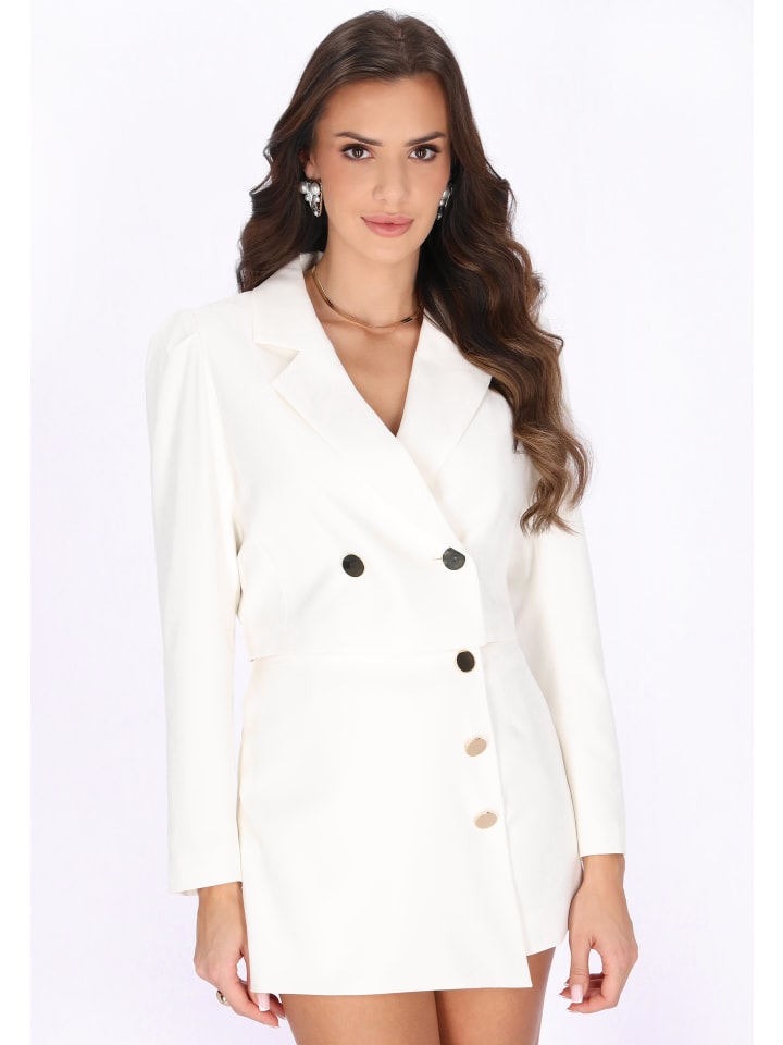 - Укороченный блейзер классического кроя с воротником с лацканами и длинными пышными рукавами