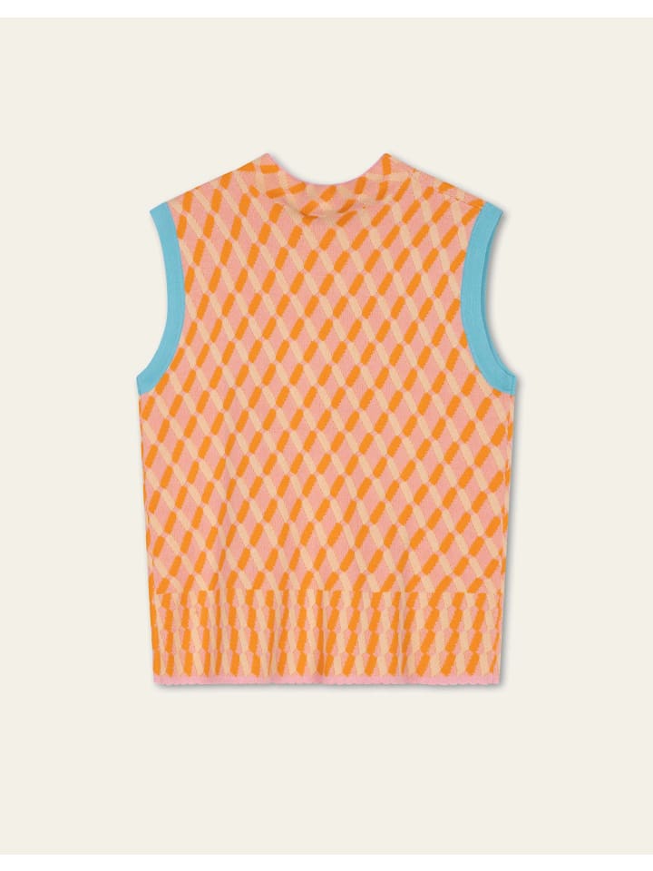 Этот трикотажный топ без рукавов из жаккарда можно носить под кардиганом или жакетом, или просто отдельно. Контрастные плечи добавляют стильный штрих. Узор продолжается на высоком воротнике, а подол красиво волнистый. - 100% органический хлопок GOTS - Сделано в Китае - Рост модели 171 см/5'7", размер 36