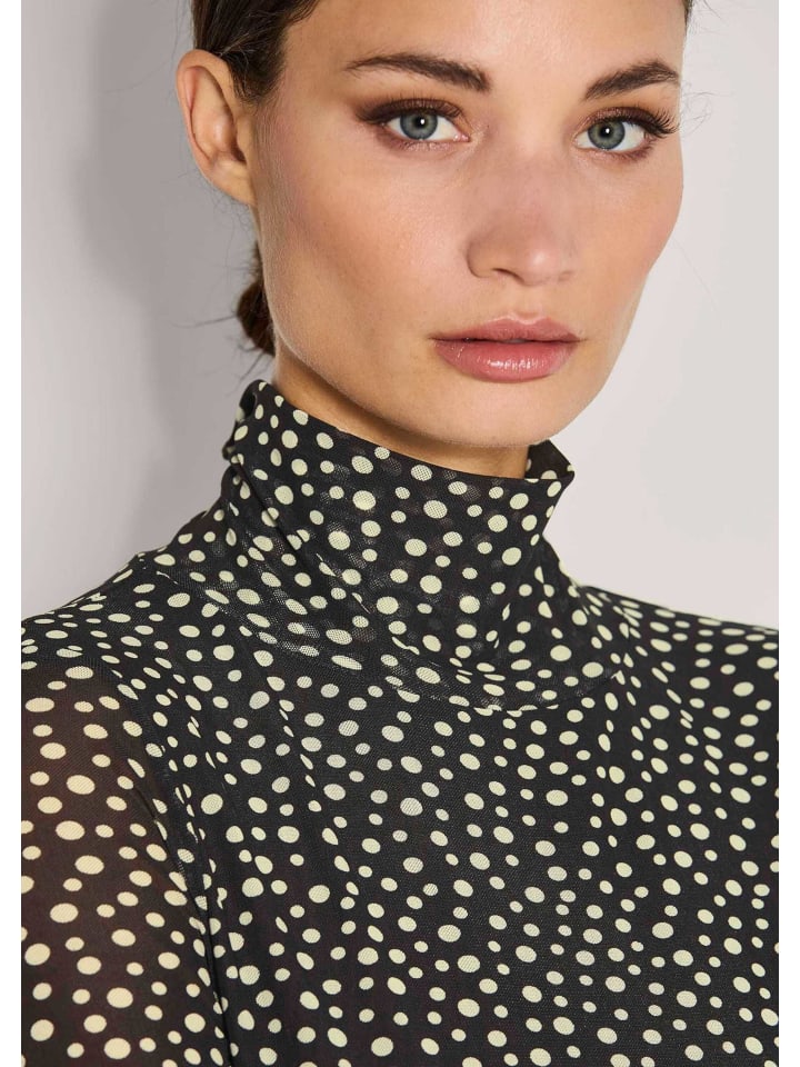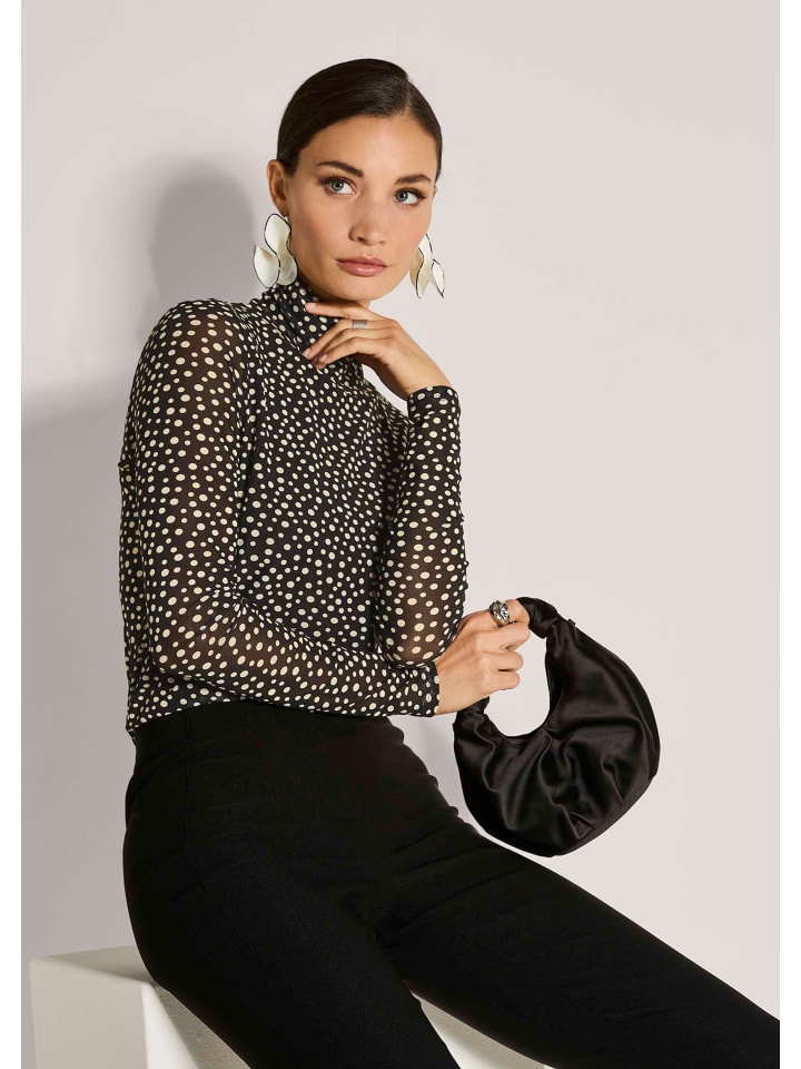 Изящная, очаровательная, но при этом выразительная. Эта рубашка сочетает в себе женскую элегантность и комфортную свободу движений. Приталенный крой мягко облегает силуэт и ненавязчиво подчеркивает женскую фигуру. Благодаря эластичности она движется вместе с вами и обеспечивает исключительный комфорт. Контрастный узор в горошек по всей поверхности придает модели неповторимый характер. Игривый, но в то же время утонченный, узор добавляет нотку модной свежести и легкую игривую элегантность. Изящный воротник-стойка подчеркивает четкие линии и придает рубашке современный вид. Длинные рукава завершают образ и делают эту рубашку универсальным аксессуаром. Эта рубашка, будь то самостоятельный элемент гардероба или очаровательный базовый слой, обязательно станет вашей любимой.
