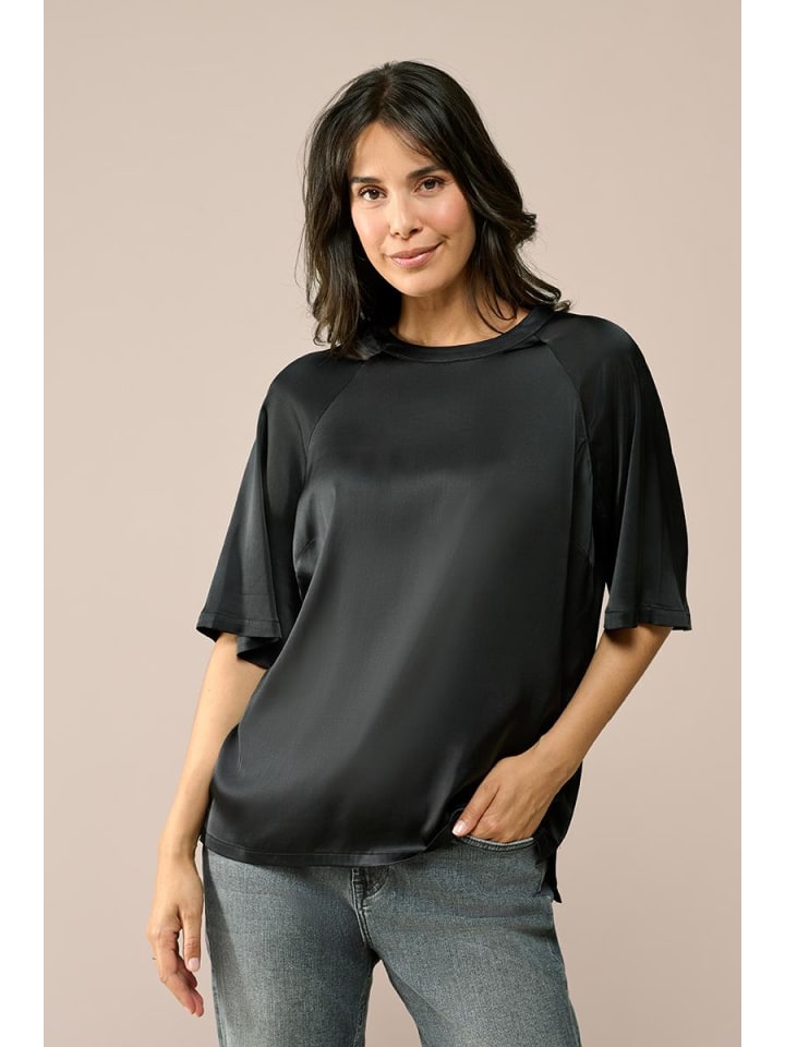 Черный топ - незаменимый элемент гардероба, и этот топ Roblin из моей новой коллекции, выполненный из ткани с атласным блеском, еще раз это доказывает. Легкий блеск ткани мгновенно придает топу роскошный вид, а прямой крой обеспечивает комфортный и привлекательный силуэт. Круглый вырез и рукава реглан добавляют современный и изысканный штрих, не будучи при этом слишком броскими. Изготовленный из мягкой смеси переработанной вискозы, вискозы и эластана, топ движется вместе с вами и обеспечивает комфорт в течение всего дня. Такое сочетание материалов создает изысканный образ и обеспечивает комфорт при ношении, поэтому вы можете легко перейти от напряженного рабочего дня к вечернему выходу. Длина до бедра также позволяет легко надевать его поверх брюк или для создания более элегантного образа.