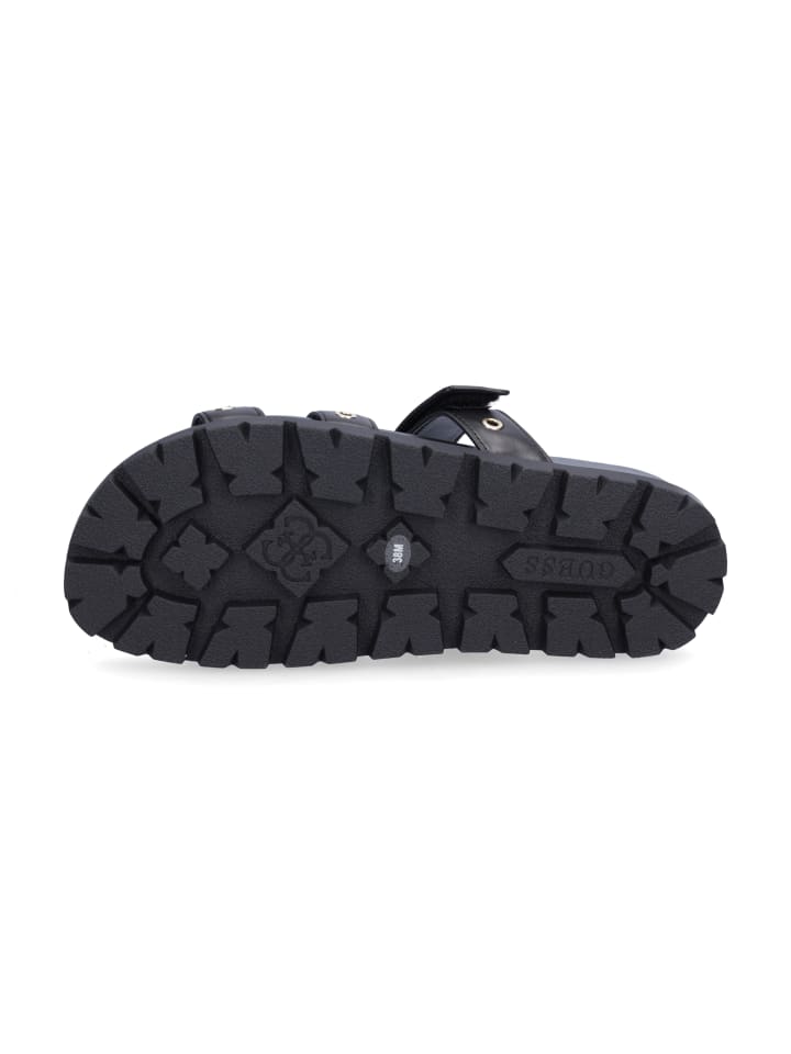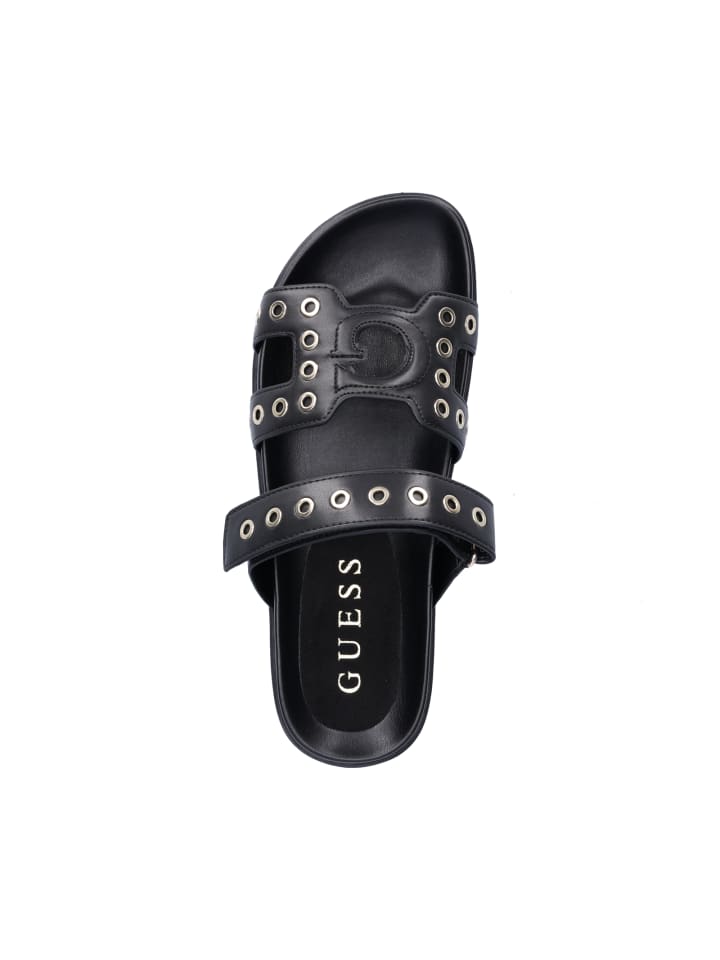 Женские мюли Guess из черной искусственной кожи с золотистыми заклепками, застежкой-липучкой и стелькой из искусственной кожи и текстиля.