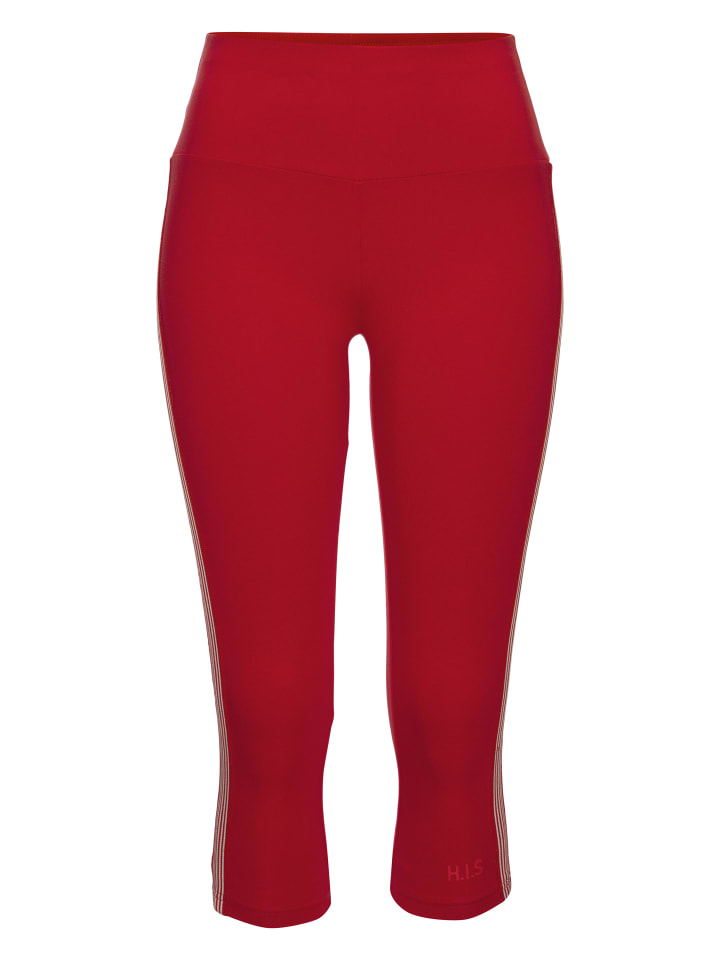 Облегающие спортивные леггинсы-капри от HIS с широким удобным поясом. Яркая деталь: полосатая лента вдоль штанин. Идеально подходят для занятий спортом и фитнесом, а также в качестве домашней одежды или базового элемента гардероба. Изготовлены из эластичного хлопка.