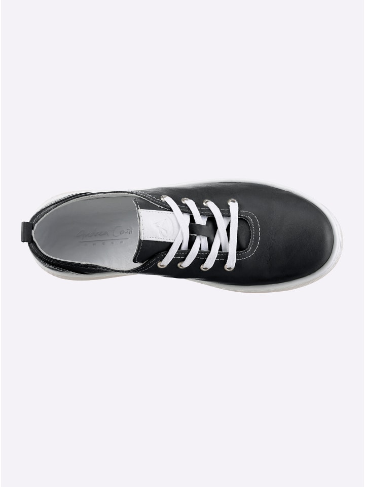 Будьте в тренде и покоряйте улицы в этих стильных кроссовках от Andrea Conti. Верх выполнен из высококачественной гладкой кожи. Съемная кожаная стелька позволяет при необходимости использовать ортопедические стельки. Подошва из термопластичной резины с каблуком высотой около 25 мм. Ширина G.