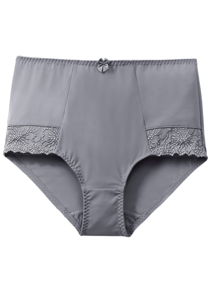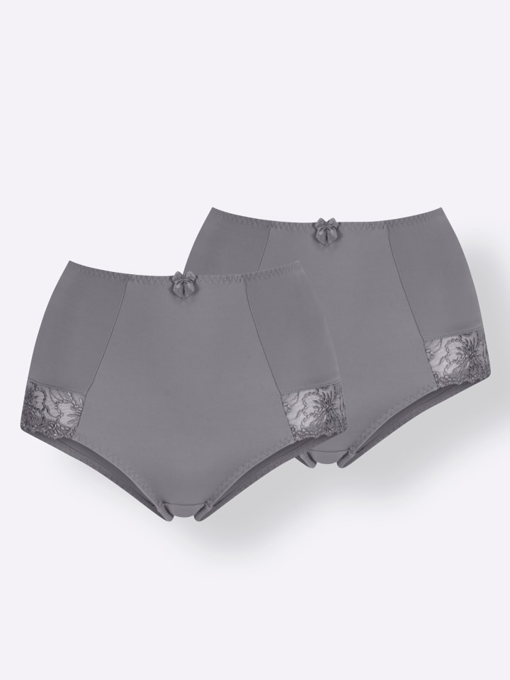 Романтичные трусики с высокой талией от Wäschepur, продаются в упаковке из двух штук. Украшены кружевной отделкой по эластичным краям штанин. Хлопковая ластовица.