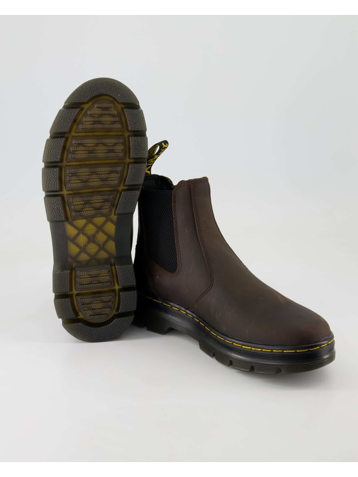 Мужские ботинки Dr. Martens Embury Chelsea сочетают в себе качество и комфорт. Идеальные для повседневной носки, они впечатляют своим дизайном и высоким качеством изготовления. Верх из гладкой кожи прочен и прост в уходе, а текстильная и синтетическая подкладка обеспечивает комфортную посадку. Резиновая подошва обеспечивает хорошее сцепление в повседневных ситуациях. Эти ботинки челси сочетают в себе функциональность и современный вид, что делает их идеальным спутником. - Эластичные манжеты с обеих сторон - Верх: Кожа - Подкладка: Текстиль и синтетика - Ботинки челси - Стелька: Текстиль - Подкладка: Текстиль - Другой материал - Подошва: Другой материал - Верх: Кожа