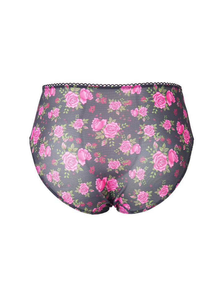 Трусики миди из прозрачной сетки с узором из роз - с подкладкой спереди для непрозрачности. Пояс с изящной декоративной отделкой.