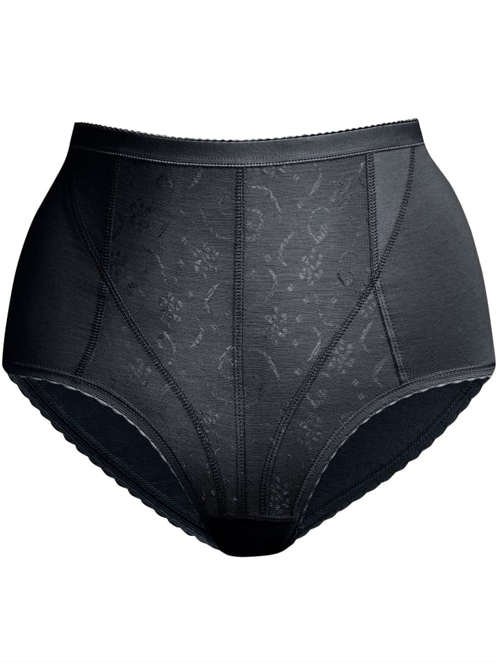 Корректирующие трусики от Wäschepur с усиленной передней частью для более плоского живота. Эластичный пояс, двойная ластовица, манжеты на штанинах с эластичной шнуровкой. Продукт сертифицирован OCS.