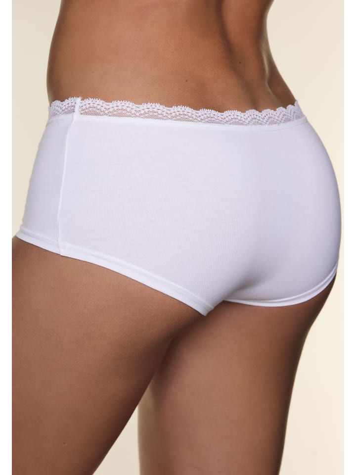 Однотонные и в горошек хипстеры от Vivance с красивой кружевной отделкой на поясе. Удобная упаковка из 6 штук. Комфортны в ношении благодаря мягкой хлопковой смеси с эластаном.