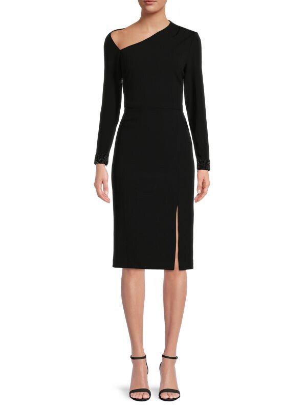 Асимметричное платье-футляр Aidan Mattox Navy