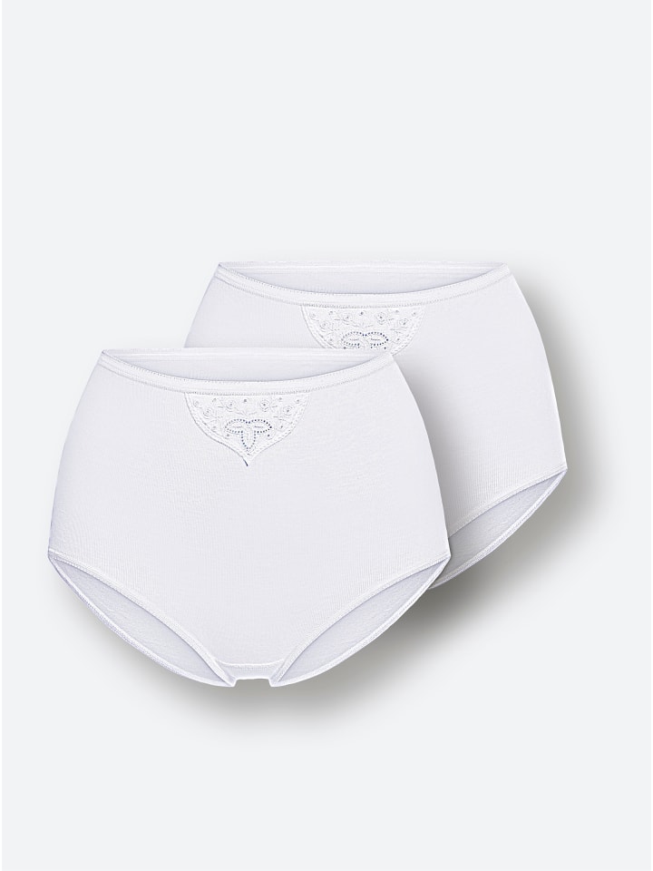 Трусики Schiesser в двойной упаковке. Украшены небольшим батистовым узором спереди, имеют эластичный пояс и манжеты, а также двойную ластовицу. Тонкая ребристая вязка.