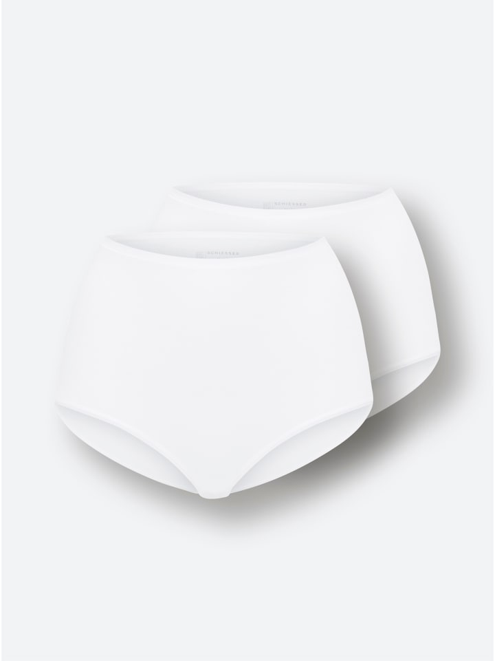 Комплект из двух трусиков: трусики с высокой талией из серии ORGANIC COTTON от Schiesser. С плоским поясом и манжетами. Изготовлены из ткани, сохраняющей форму.