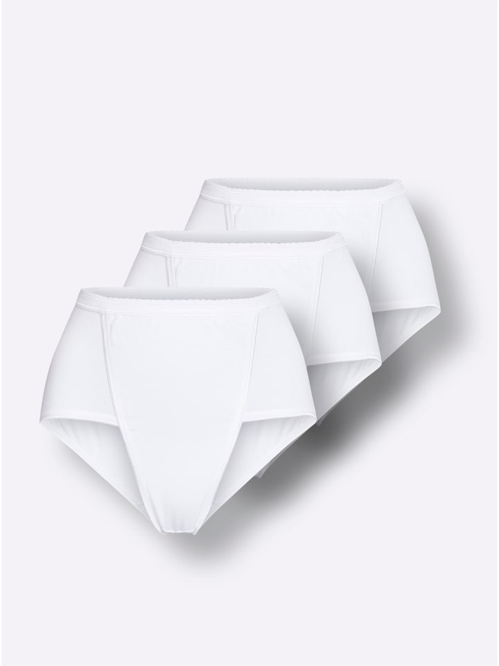 Корректирующие трусики в популярном стиле с высокой талией и высоким вырезом для ног. Удобная упаковка из 3 штук! Продуманное усиление спереди мягко формирует живот и оптимально скрывает проблемные зоны. С хлопковой ластовицей. Поддерживает инициативу «Хлопок, произведенный в Африке».
