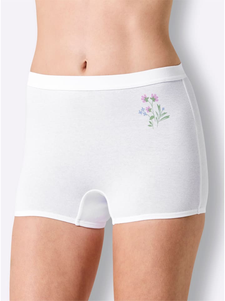 Трусики от Wäschepur в упаковке из 4 штук. С мягким поясом, небольшим принтом сбоку и эластичными манжетами. Двойная ластовица. Трикотаж одинарной вязки. Сертифицированы GOTS.