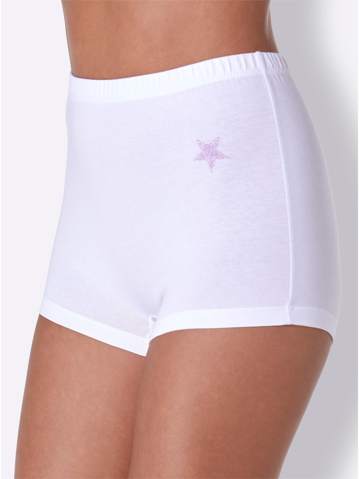 Трусики от Wäschepur в недорогой упаковке из 3 штук. С узким эластичным поясом и удобными вырезами для ног. Принт в виде звезд на передней части - очаровательная деталь. Поддерживает инициативу «Хлопок, произведенный в Африке».