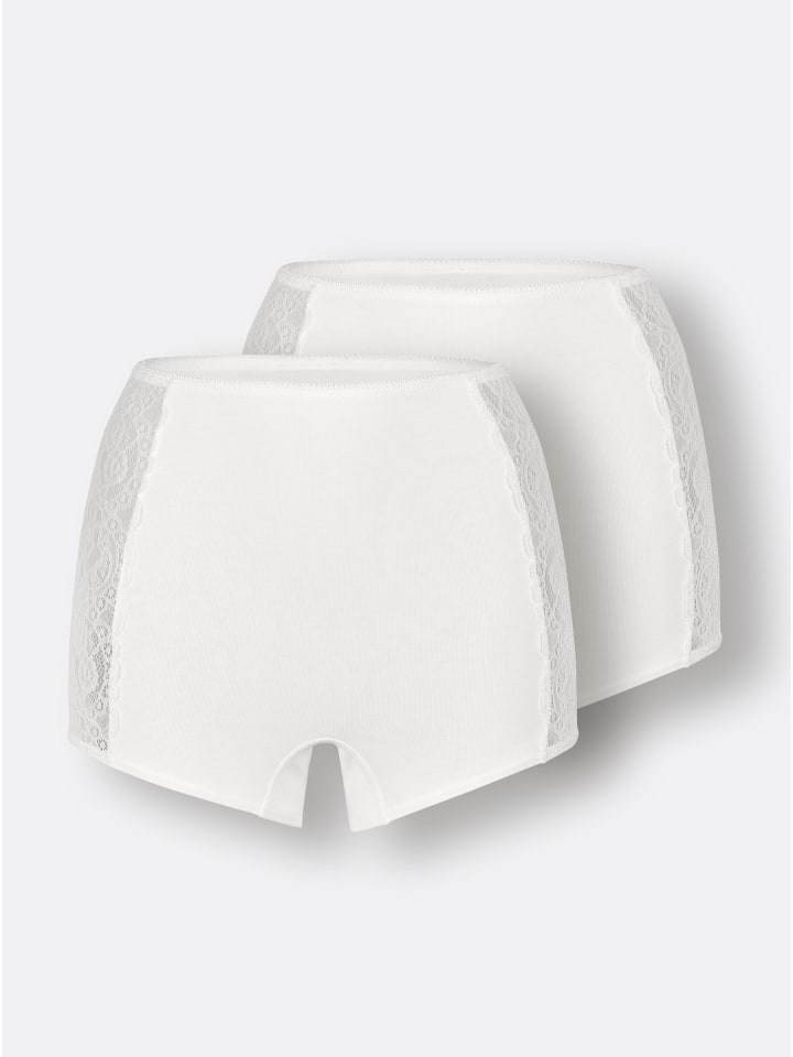 Мягкая трикотажная ткань, приятная на ощупь, а боковая шнуровка добавляет женственности: трусики от Wäschepur, продаются в упаковке из двух штук, с эластичным поясом, манжетами и двойной ластовицей. Поддерживает инициативу «Хлопок, произведенный в Африке».