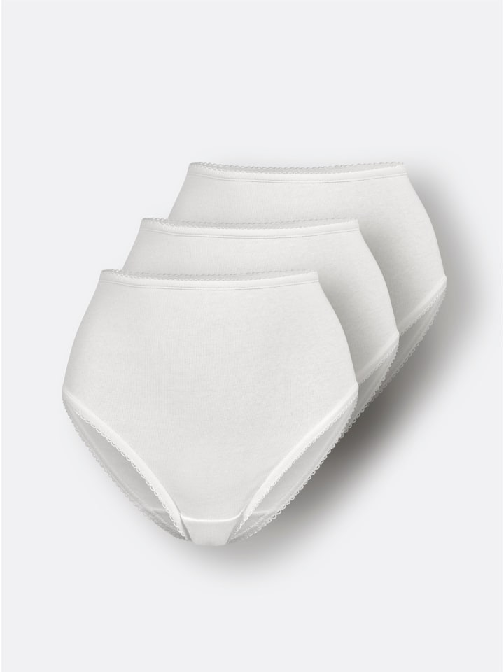 Трусики-хипстеры в упаковке из 3 штук от Wäschepur. Волнистый край эластичного пояса и штанин - настоящая изюминка. С хлопковой ластовицей. Тонкая ребристая вязка. Сертифицировано GOTS.