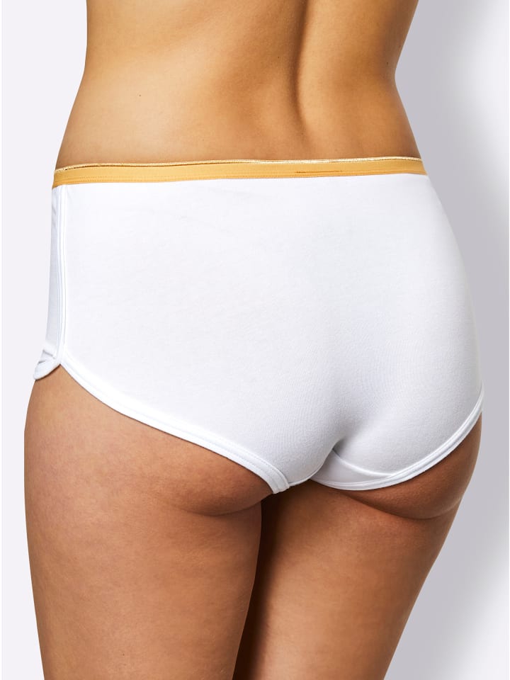 Для тех, кто хочет большего: трусики-хипстеры в упаковке из 7 штук от Wäschepur. С плоским эластичным поясом и эластичными, очень удобными вырезами для ног. Двойная ластовица.