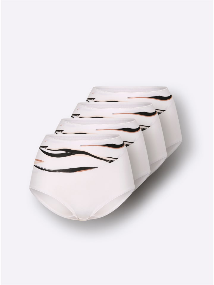 Трусы от Wäschepur в упаковке из 4 штук. Очень удобные, из качественного трикотажа, с мягким эластичным поясом и эластичными манжетами. Привлекательная вставка с зебровым принтом - настоящая изюминка! Двойная ластовица. Поддерживает инициативу «Хлопок, произведенный в Африке».