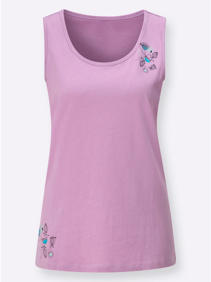 Приятная для кожи повседневная блузка с красивыми цветочными мотивами на передней части. Круглый вырез горловины и проймы отделаны кантом. - Цветочный принт. Материал: 100% хлопок.