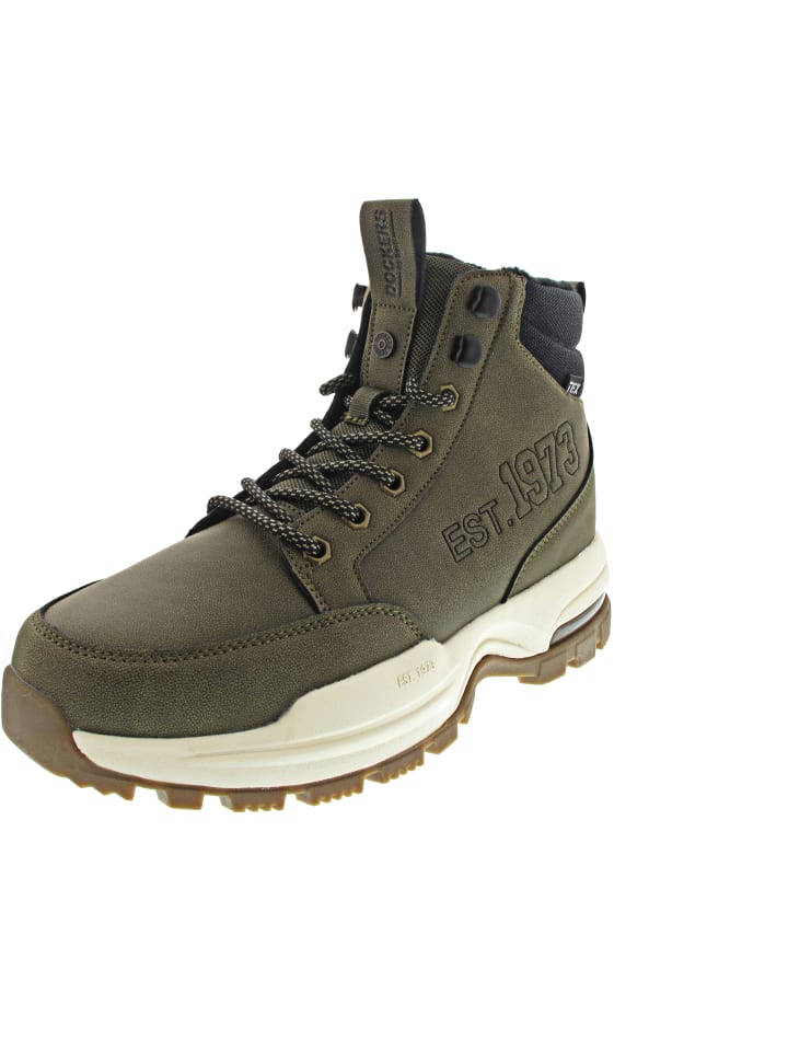 - Dockers Tex: водонепроницаемые и дышащие - прочная подошва - стильные ботинки на шнуровке - шнуровка с металлическими люверсами - практичная внутренняя молния - мягкий воротник с подкладкой - повседневный крой для уверенного образа в любой ситуации - идеально подходят для холодного времени года