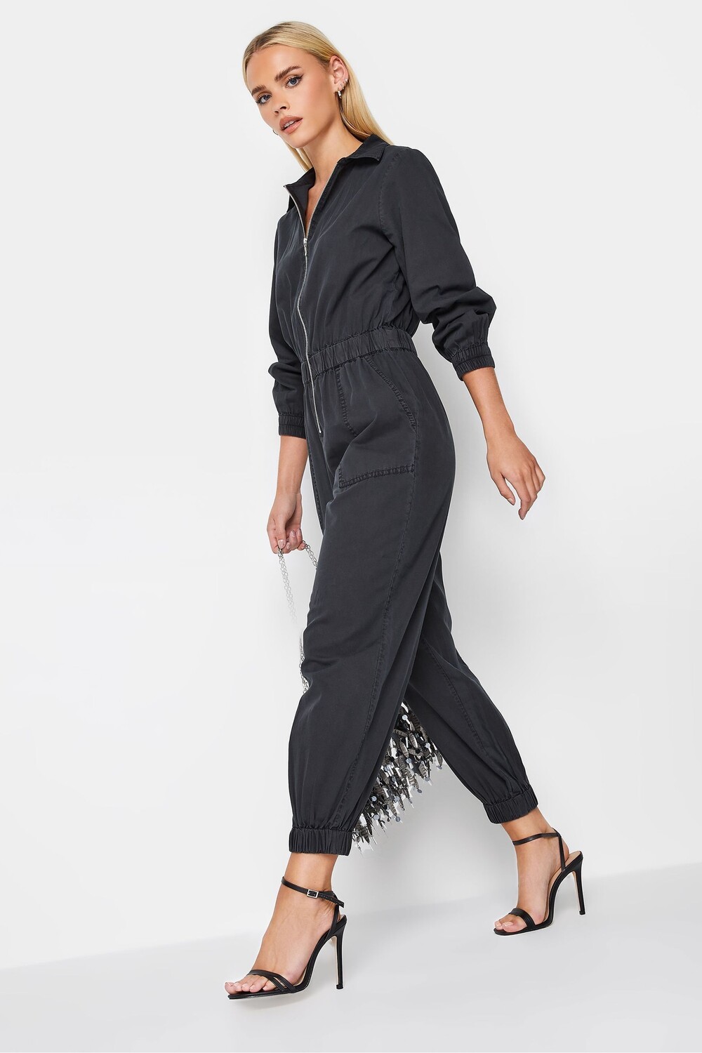 Комбинезон с длинными рукавами и молнией спереди PixieGirl Petite, черный