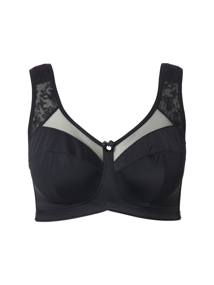Бюстгальтер без косточек. Изящная вышивка на вырезе. Приятная для кожи микрофибра с прозрачной сеткой. Удобные широкие и мягко смягченные бретели, регулируемые сзади.