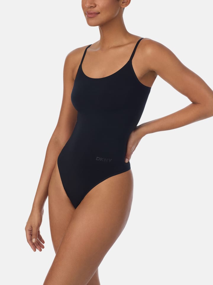 Этот боди отличается исключительной легкостью, эластичностью и бесшовностью, а также усиленным вырезом горловины и подмышками. Он идеально облегает тело и обеспечивает исключительную поддержку. Талия имеет красивую форму, не стесняя движений. Мягкая на ощупь поверхность обеспечивает невероятно комфортное ощущение, которое дополнительно усиливается регулируемыми бретелями. Знаменитый логотип DKNY расположен на бедре. Особенности: усиленный вырез горловины, усиленные подмышки, облегающая талия, бесшовный, эластичный.