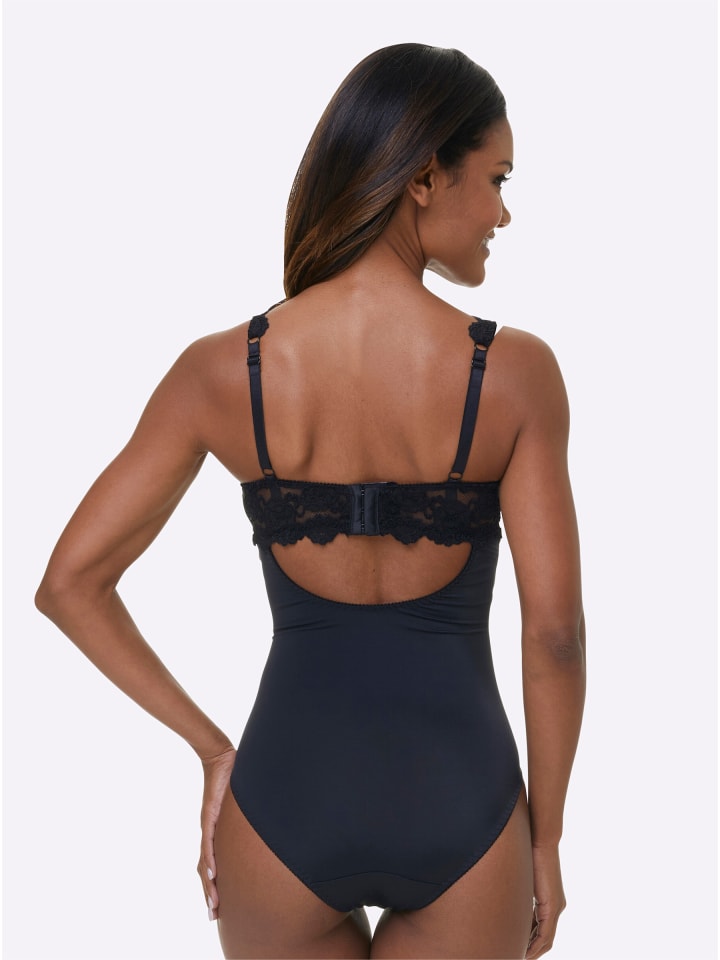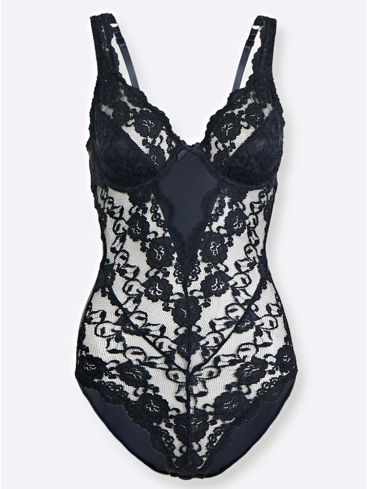 Этот боди на косточках от Sassa невероятно соблазнителен! Передняя часть полностью покрыта эластичным, слегка прозрачным кружевом, которое переходит в регулируемые бретели сзади. Он имеет чашечки из двух частей с мягкой подкладкой в нижней части. Застегивается на крючки сзади и в области промежности.