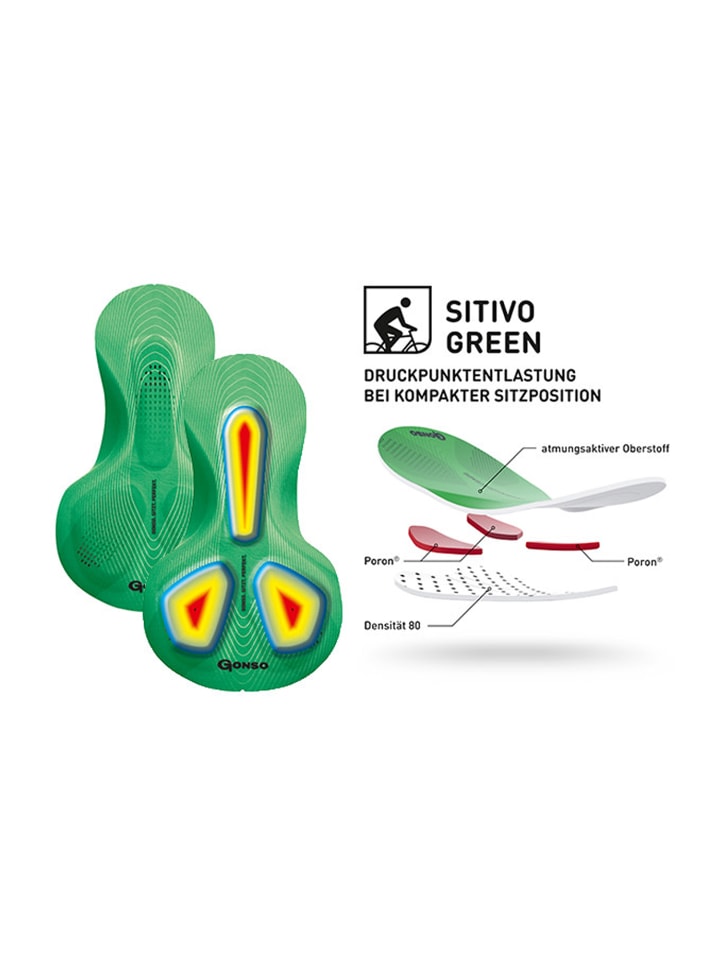 - Подушка сиденья SITIVO Green для максимального комфорта в компактной посадке, например, во время сложных велотуров и катания на горных велосипедах.